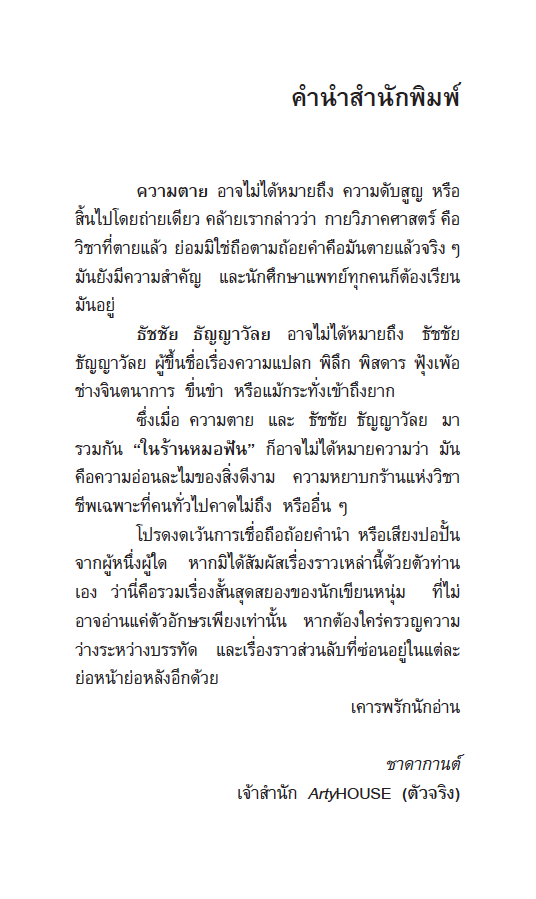 จัดพิมพ์โดย สำนักพิมพ์ ArtyHOUSE